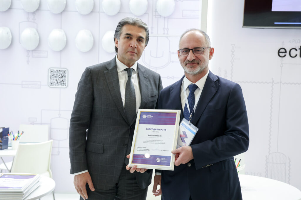 Награждение предприятий-партнеров ЦОПП ТГУ. Диплом вручается АО «Пигмент». Источник фото: Пресс-служба РСХ