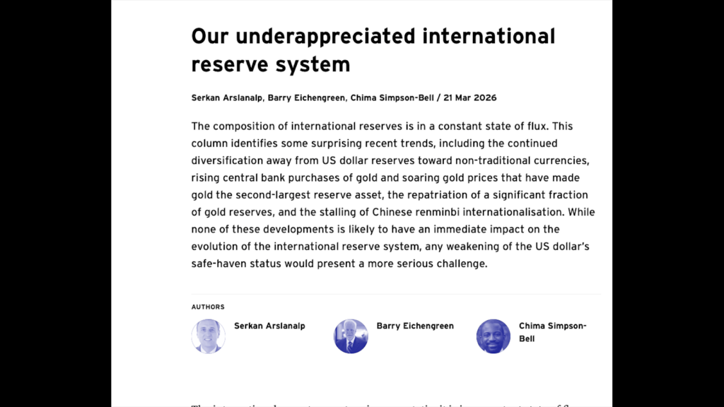 Структура международных резервов претерпевает непрерывную трансформацию, что отражает динамичную природу мировой валютной системы. В последнее время наблюдаются несколько примечательных тенденций: устойчивая диверсификация с сокращением роли американского доллара в пользу ряда нетрадиционных валют; значительный прирост золотого запаса, который по своей доле в глобальных резервах обогнал евро; возвращение физического золота в страны-владельцы; а также приостановка процесса укрепления позиций китайского юаня на мировой арене, отмечается в статье европейского Центра исследований экономической политики (CEPR).
