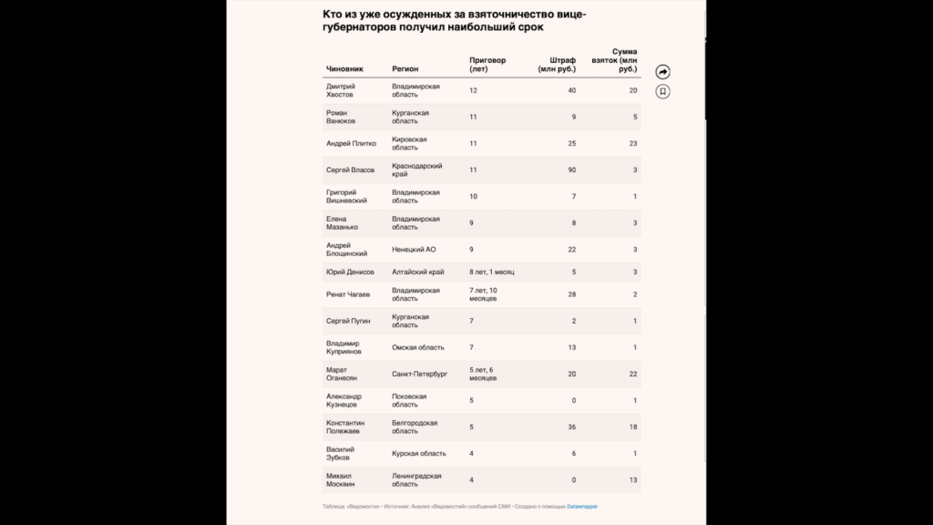 Единственным чиновником такого ранга, дважды попавшим под уголовное преследование за этот срок, стал экс-замгубернатора Владимирской области Дмитрий Хвостов, приговоренный в 2018 и 2020 годах к многолетнему заключению за взяточничество.
