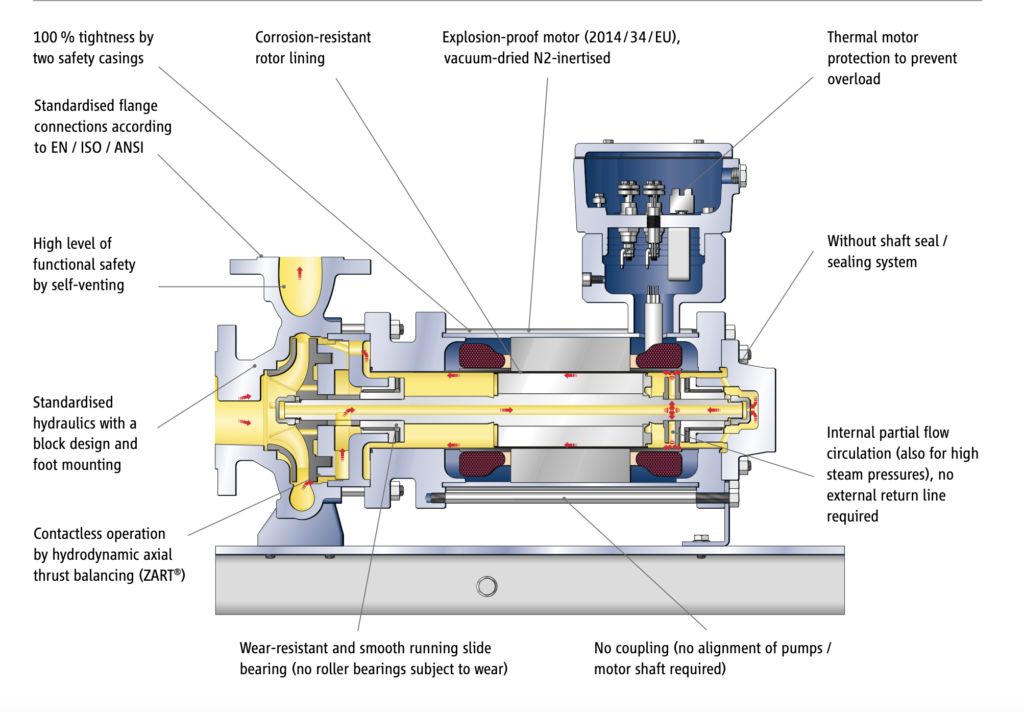 Практический опыт применения герметичных насосов в LCO₂-системах демонстрирует эффективность решений, основанных на принципе полного герметичного исполнения. В пилотных установках, разработанных для исследования систем термического аккумулирования холода, насосное оборудование должно обеспечивать стабильную циркуляцию CO₂ при переменных режимах работы. Эксплуатация в таких условиях выявляет ключевую проблему традиционных насосов — наличие динамических уплотнений, подверженных износу и потенциальным утечкам.