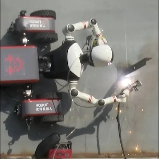 Гуманоид использует колесную базу с электромагнитным сцеплением, обеспечивающим надежное движение по вертикальным и наклонным металлическим поверхностям даже с дополнительной нагрузкой. Конструкция, похожая на человеческую, включает две руки и обладает 15 степенями свободы, что обеспечивает подвижность, сравнимую с подвижностью человека. Робот может одновременно осуществлять разные действия, например, вести сварку и проводить зачистку на высоте.