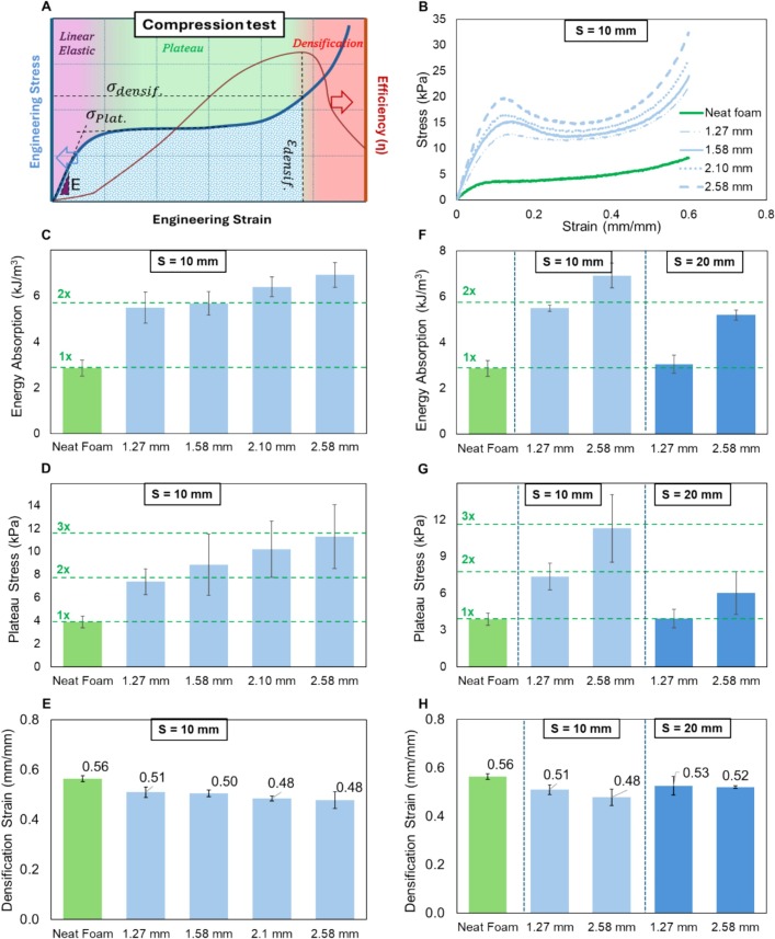 Ключевая особенность разработки — взаимодополняющее взаимодействие компонентов. На первых этапах сжатия пена фиксирует распорки, не давая им разрушиться раньше времени. При возрастании давления распорки, в свою очередь, перераспределяют нагрузку на окружающую пеноматрицу, что значительно увеличивает общую энергоёмкость материала. «Это магия синергии, симбиотический композит пены и каркаса», — прокомментировал доктор Нараги. Проект финансируется армией США, заинтересованной в усовершенствованных материалах для защиты личного состава. Подобный гибридный материал может серьёзно улучшить характеристики армейских касок, призванных не только противостоять пулям, но и гасить энергию при ударах о землю.