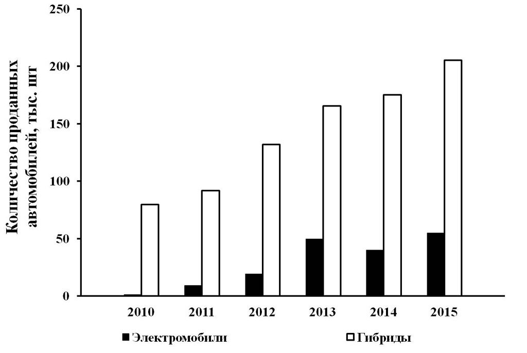 Рис. 1. Динамика продаж электромобилей и гибридов (ICCT [1]).