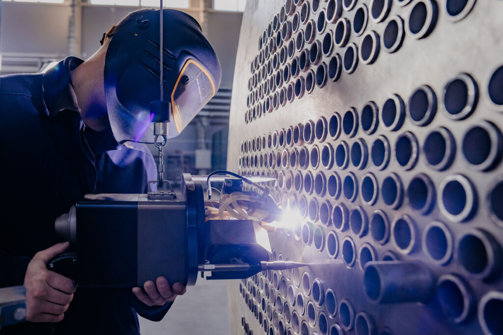 Процесс орбитальной сварки на теплообменном аппарате. Источник фото: Служба по коммуникациям и маркетингу КАО «Азот»